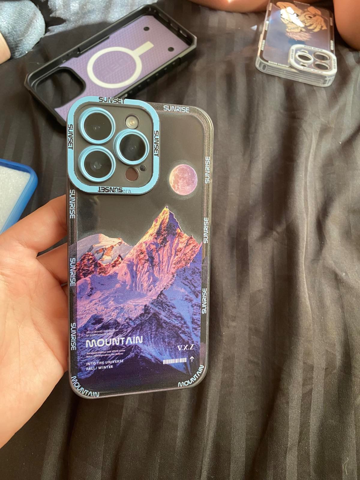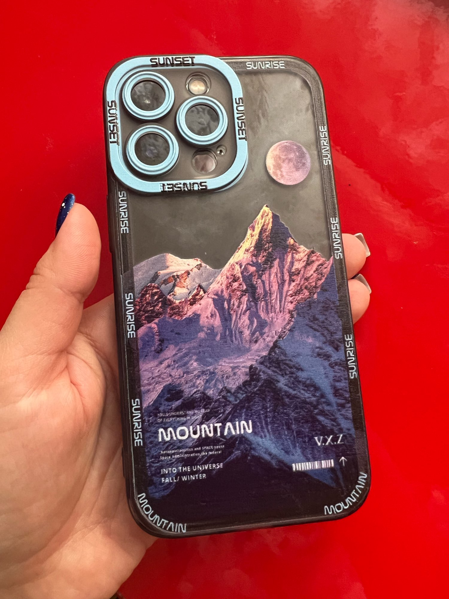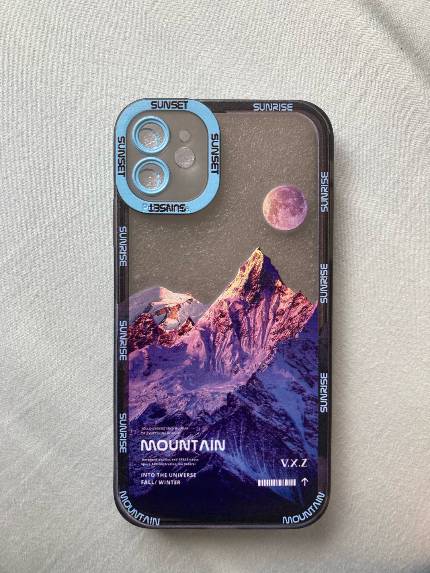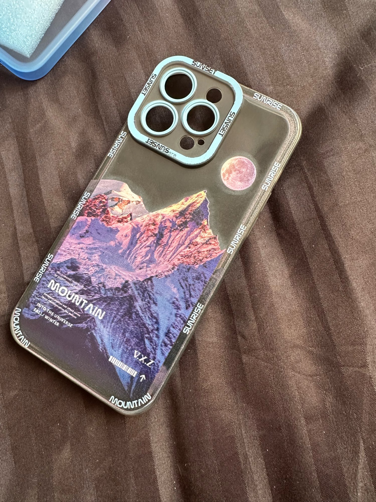INS Purple Blue Sunset Snow Mountain Phone Case For iPhone 14 13 12 11 Pro Max XR X XS Natural scenery Shockproof Bumper Cover